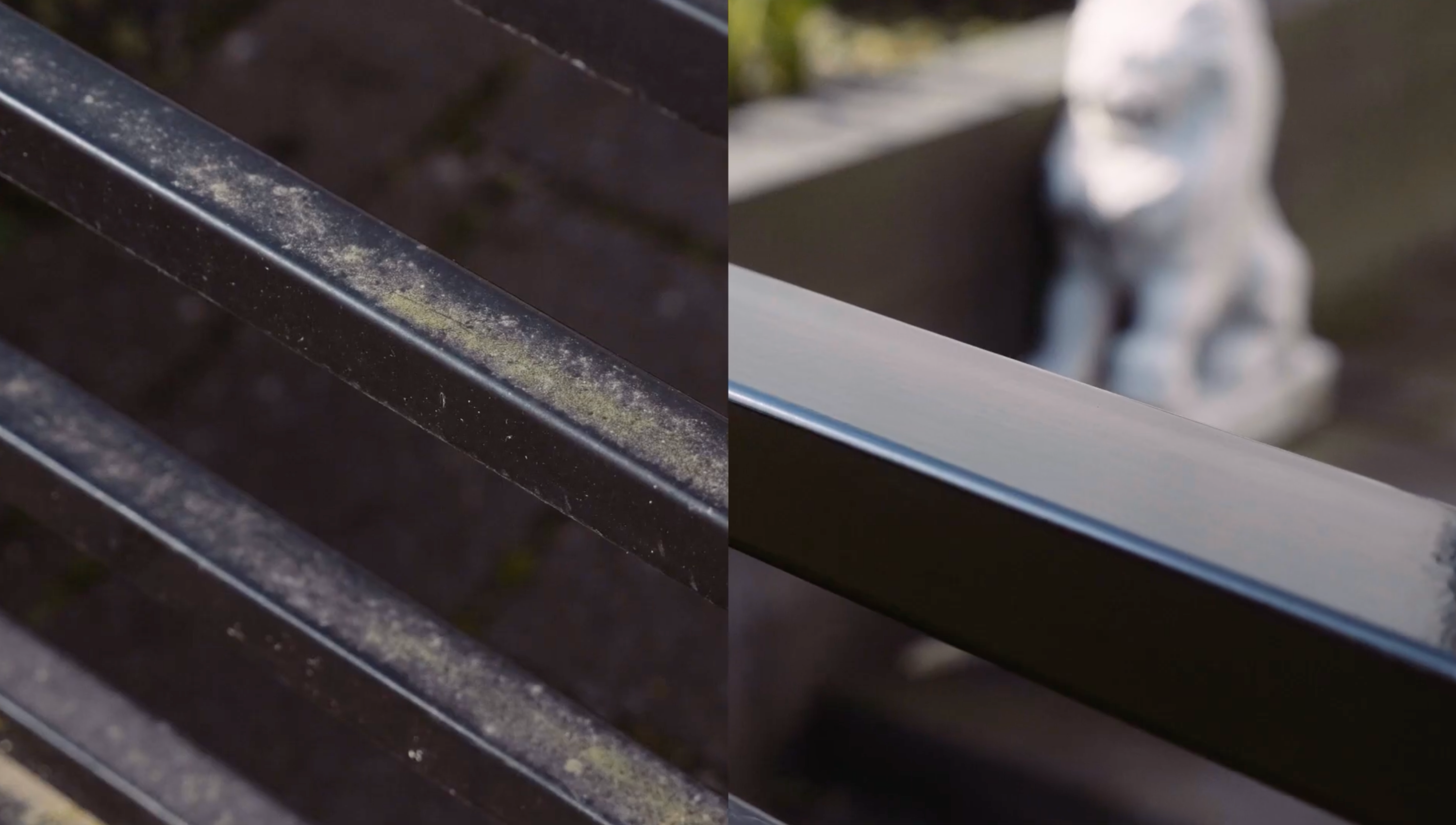 Onze reiniger lost groene aanslag en zwarte strepen snel op, zonder de lak of coating te beschadigen. Even inwerken, afspoelen en uw hekwerk of kozijnen zien er weer strak uit.